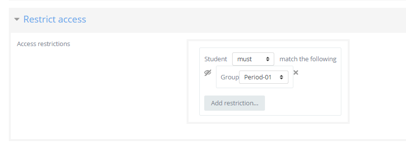 Access can be restricted to this activity based on a specific group/period or passing grade of another activity on the course.