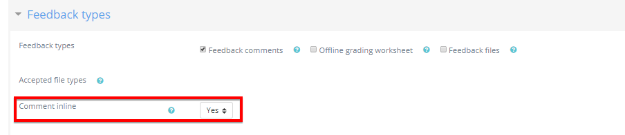If you are collecting "online text", comment inline feedback type would come handy when providing comments to text submissions.