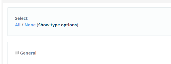 5. If desired, select specific types of activity to be backed up by clicking the link 'Show type options'. If you select a specific type of activity, such as SBA, make sure to select the week it belongs to.