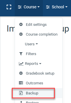 2. Click the Backup link either in the gear menu or in the "Course" dropdown menu.
