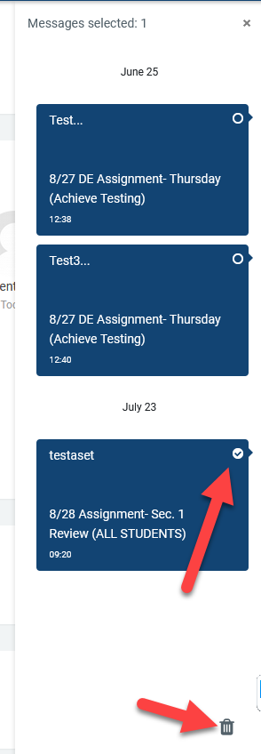If allowed, messages may be deleted by clicking on the message text and selecting multiple messages, and clicking on the delete button that appears at the bottom of the page.