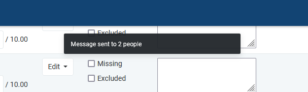 Sending messages via quick grading screen