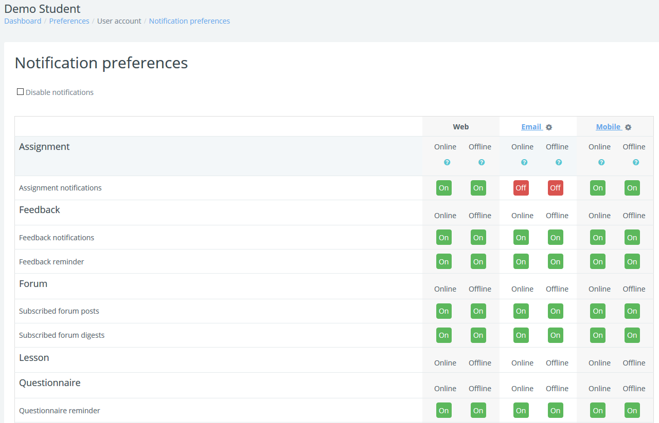 - Web offline options are for setting whether a user is notified when they next log in to Radix.