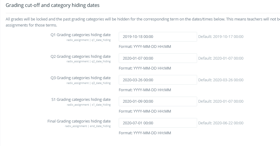 Before importing school data or enabling SIS synchronization, please review and update the following configurations to ensure your Radix LMS functions correctly. Most plugin settings can be found under the “School → Radix Plugins & Blocks” menu.
