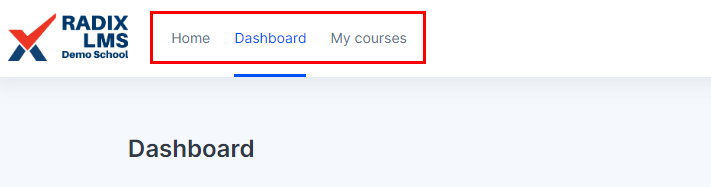 ![]() | NavBar for easy access to dashboard, site home, My courses. |