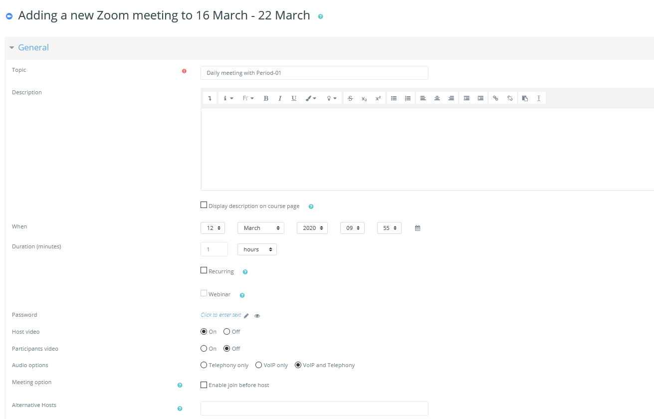 5. Click Add and a new screen will appear where you can create your Zoom meeting.
